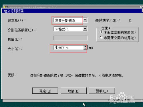 在安装系统分区时,请注意以下事项: