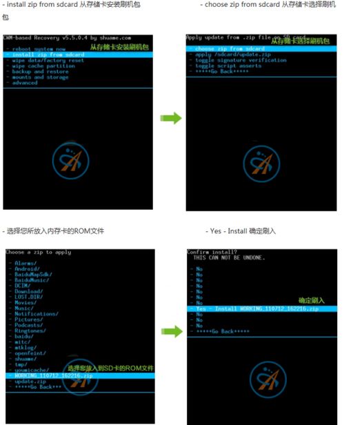 选择“安装刷机包”,然后选择内存卡中的ROM文件。